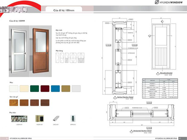 Các loại cửa đi nhôm Huyndai hệ 100