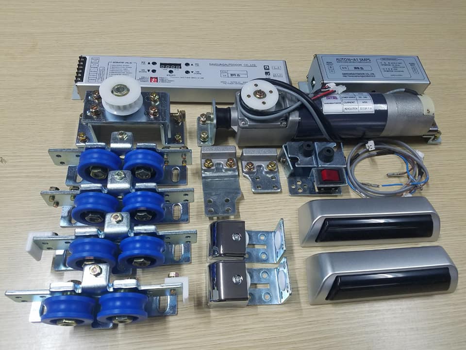 Ngoài động cơ điện và mạch điều khiển cửa samsung vẫn sử dụng hệ ray tiêu chuẩn sử dụng nhôm cao cấp chống mài mòn và tiêu âm tốt. Con lăn cửa samsung sử dụng nhựa cao cấp giúp tăng tuổi thọ, sử dụng dây curoa bước răng S8M như những các hãng cửa tự động hàn quốc khác.