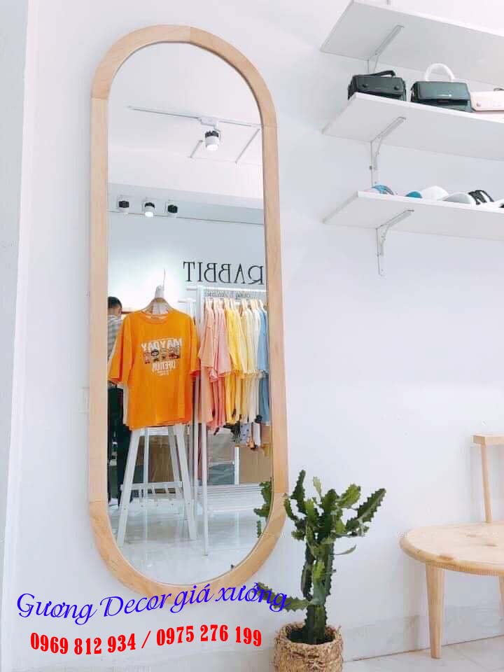 Gương viền gỗ cho shop, cửa hàng