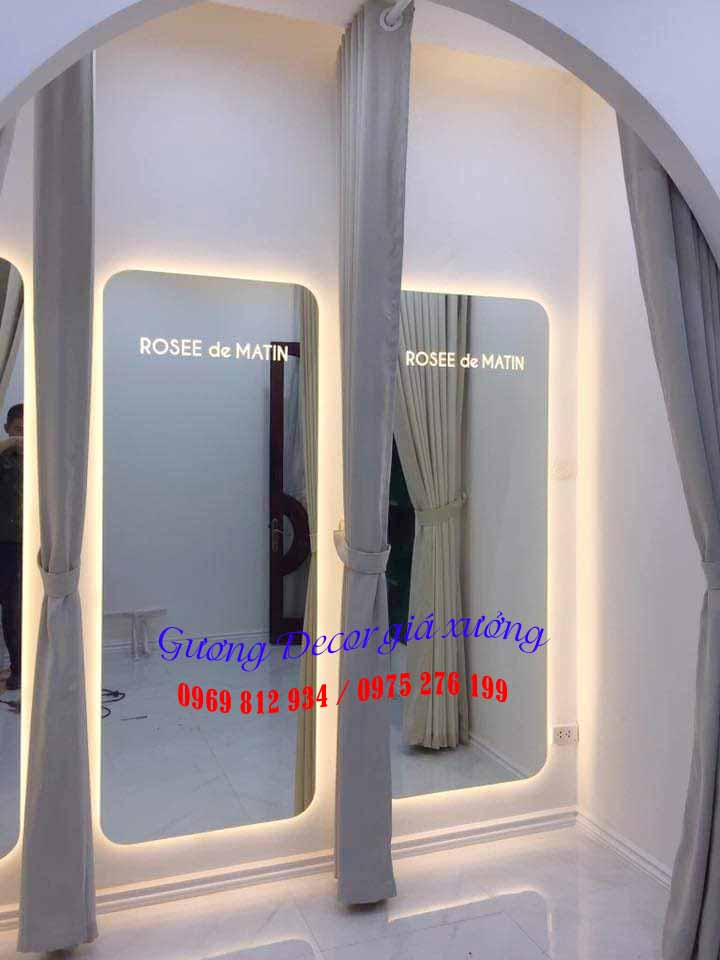 Bên cạnh đó các Shop có thể khắc thương hiệu hoặc Slogan lên trên gương. Và tạo đèn led để làm nổi bật tăng điểm nhấn cho gương.