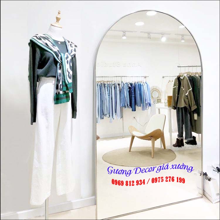 Gương shop thời trang quần áo là sản phẩm không thể thiếu trong các shop. Chúng không chỉ đơn thuần là gương soi cho khách ngắm khi thử đồ mà dùng để trang trí tạo điểm nhấn không gian cho khách checkin. Gương shop quần áo rất đa dạng về chủng loại mẫu mã kích thước. Tùy thuộc theo từng phong cách nội thất của shop cũng như phong cách thời trang khác nhau mà chọn lựa gương cho phù hợp. Cùng chúng tôi tìm hiểu các loại gương chuyên giành cho shop quần áo hiện nay.
