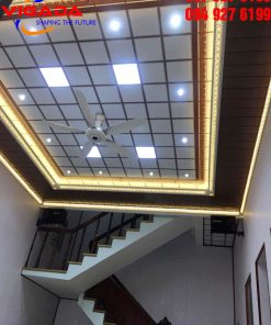 Tấm trần nhôm 300×300 được dập từ các tấm với kích thước 300×300 mm được lắp cài với thanh xương tam giác của hệ trần treo kín cho cảm quan mảng trần gọn gàng nguyên khối, đảm bảo các tấm trần thẳng hàng và cân bằng.